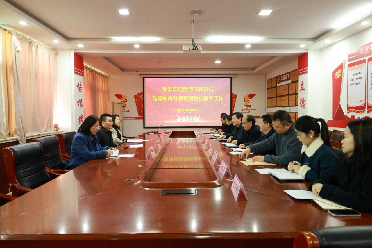 2026年1月13日上午,漯河市教育局高等教育科副科长杨许强一行莅临我校,就中高职贯通部拟新增专业的办学条件进行专项考察调研。漯河职业技术学院教务处处长张彦鸽、漯河职业技术学院人工智能学院院长李会凯、漯河职业技术学院中高职贯通部党总支书记闫建伟及相关职能部门负责人陪同考察。